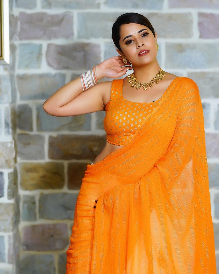 Sreemukhi Looking Awesome in Orange Outfit